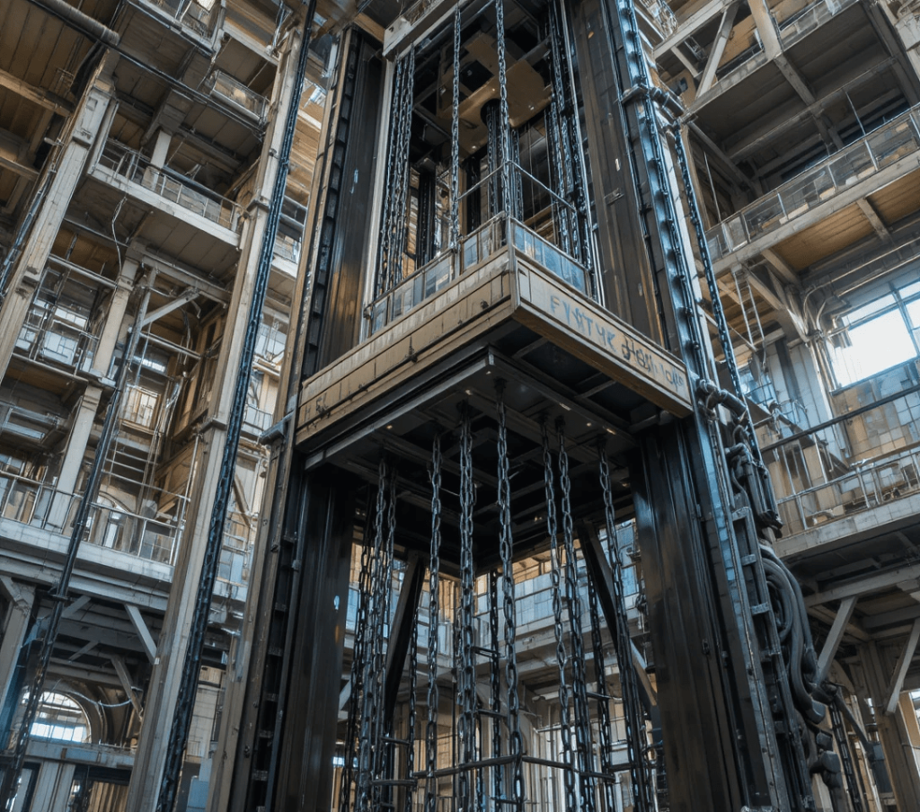 مزایای آسانسور زنجیری: مناسب برای حمل مواد فلهای، قابلیت حمل بارهای سنگین و مقاوم به شرایط سخت.